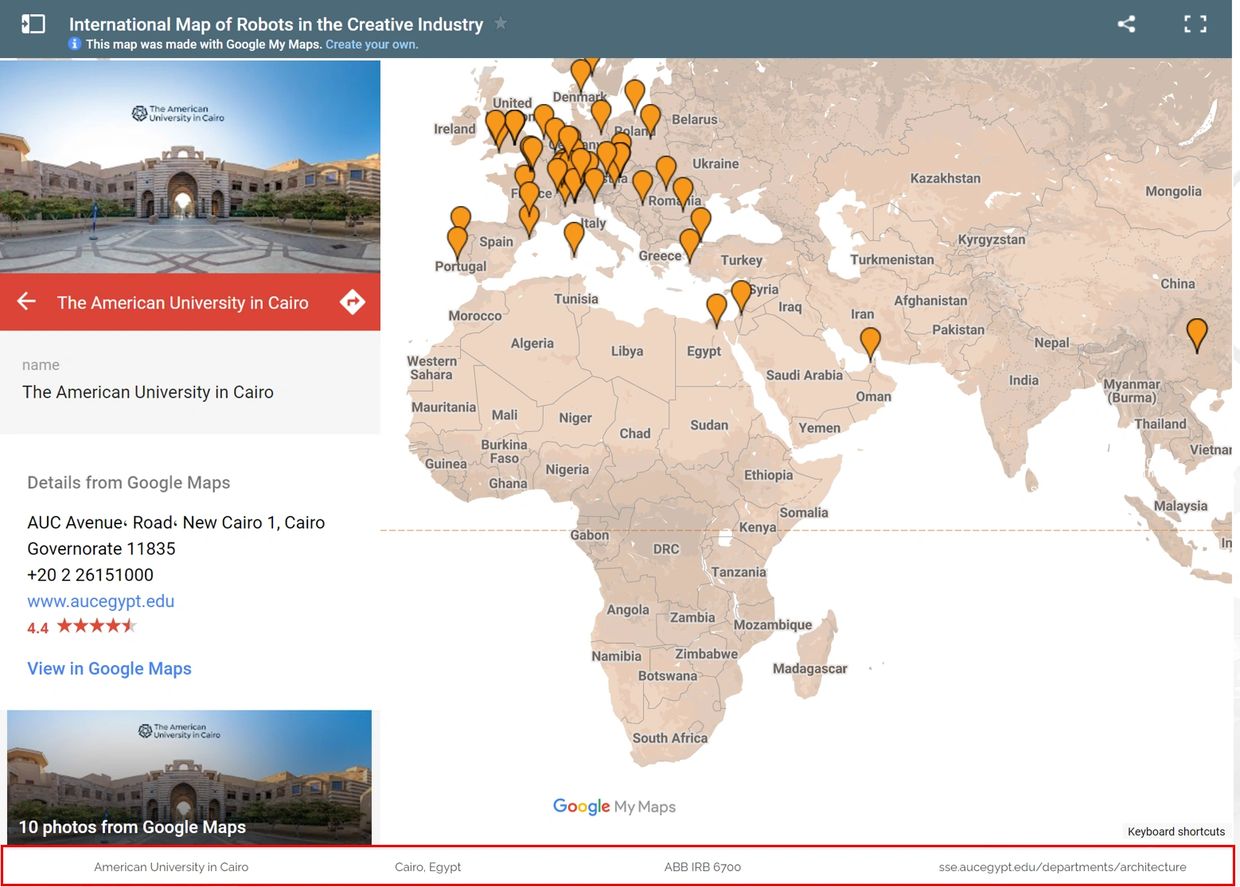 The Robotic Fabrication Lab (RFL) at AUC is officially on the International Map of Robots in the Creative Industry!